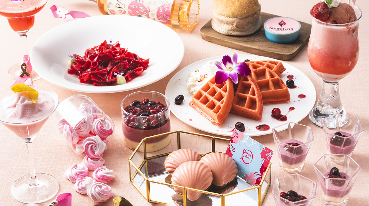私たちは2025年10月をピンクリボン活動月間とし、乳がんの正しい知識、早期発見と適切な治療の大切さをお伝えします。2025年10月1日(水)から31日(金)まで、館内の各レストランでは、ピンクにちなんだ特別なお食事やガーデンのライトアップご用意しております。ぜひこの機会にお楽しみくださいませ。