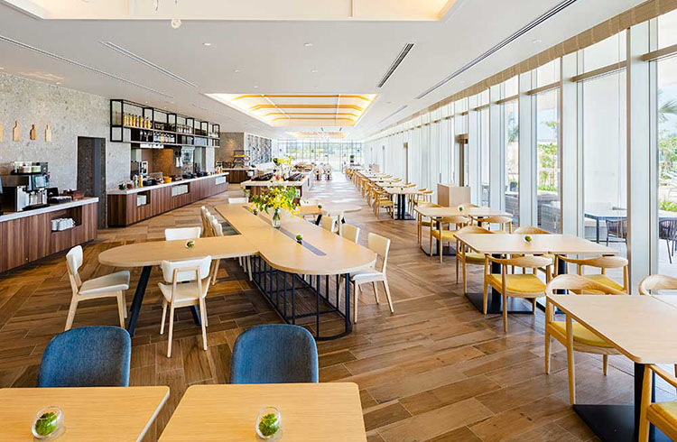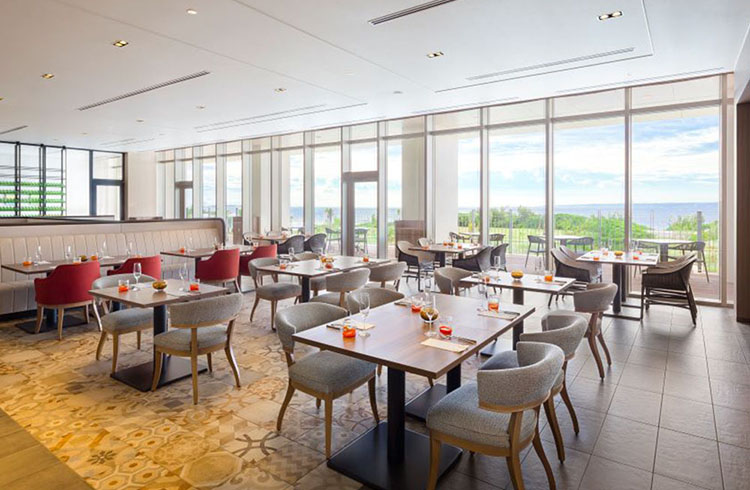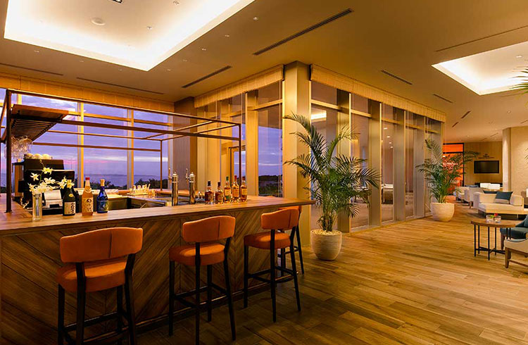 ソファーでゆったりと寛ぎながら、青く輝く圧巻のオーシャンビューや水平線に沈む夕日の絶景、そして夜空に瞬く満天の星を眺めることができるロビーラウンジ&バー「ハナリ」。コーヒーや紅茶、カクテルなどのアルコール類も取り揃えています。大切な方や友人との気軽なティータイムや、ロマンチックなバータイムにぜひご利用ください。