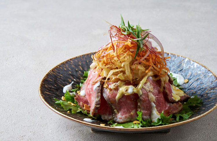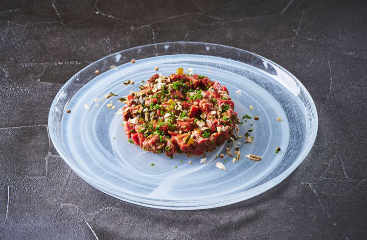 肥育ホルモンや抗生物質入りの飼料は一切使用せず、生産者の徹底した健康管理と独自の肥育方法で育てられた緋桜牛の「サーロインステーキ」と、モモ肉で作った「タルタル」をご用意。上質な赤身肉として知られる緋桜牛を、心ゆくまでご堪能ください