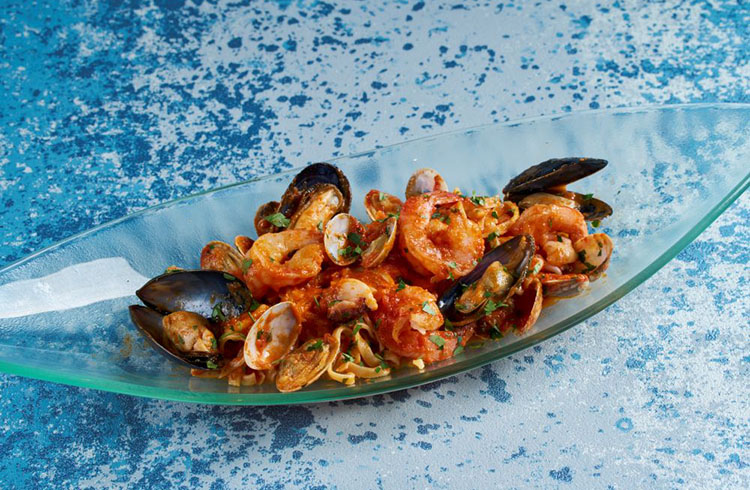 伊江島産小麦を使用した手打ちパスタのペスカトーレを使用した手打ちパスタ