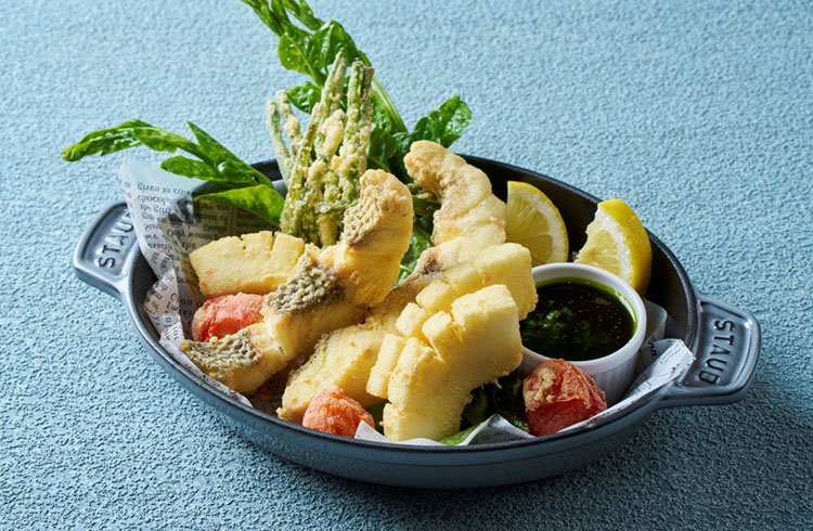 伊江島産タマン、ソデイカ、島ラッキョウのフリットミストパスタ